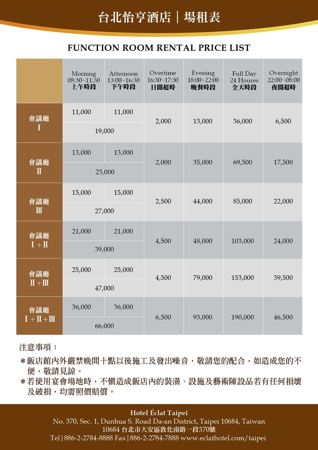 | Éclat Room I+II+III | - | - | 60 | 120 | - |