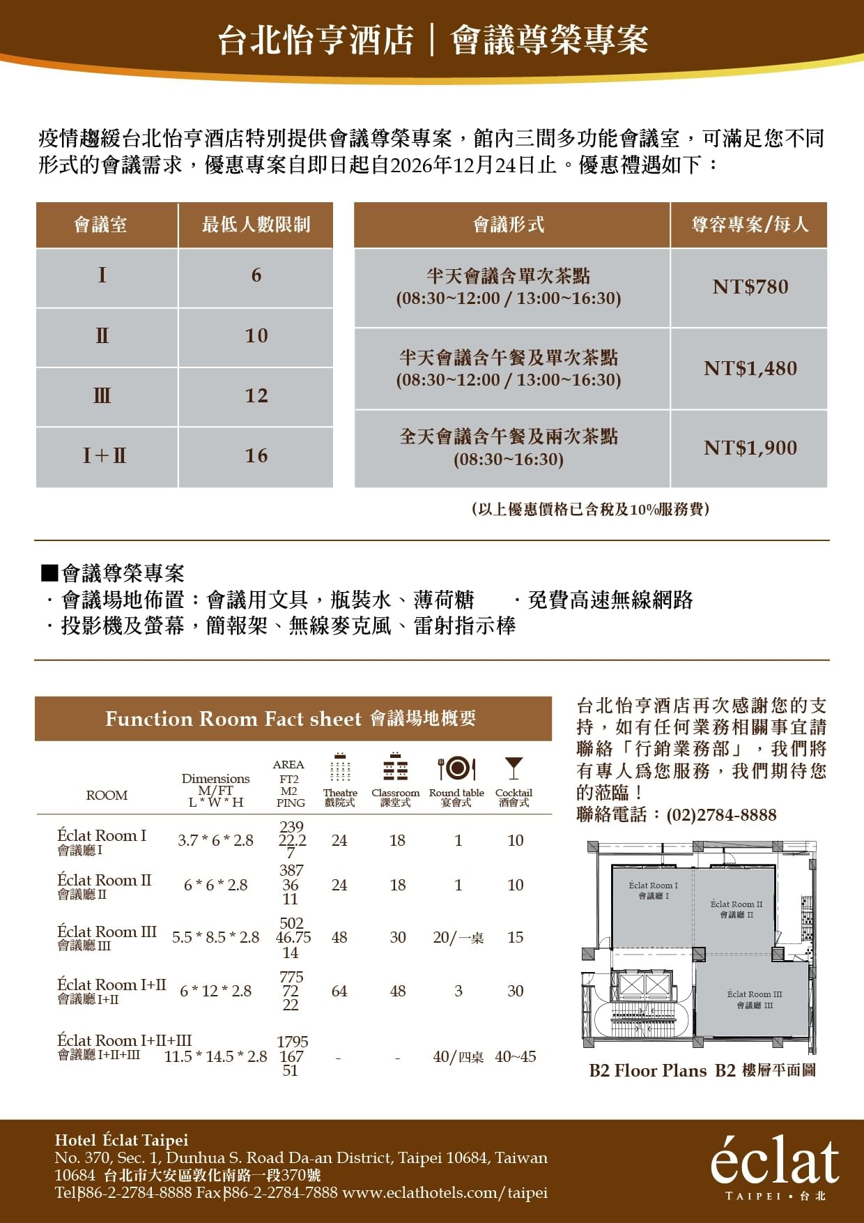 | Éclat Room III | 48 | 30 | 24 | 50 | 16 |